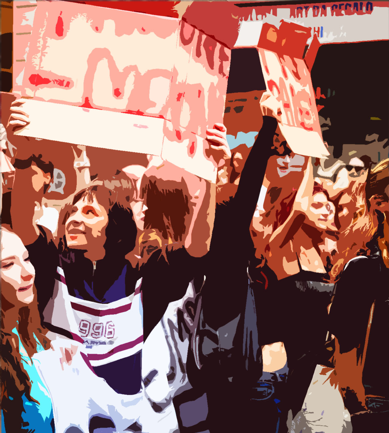 I ragazzi ci passano davanti, alle volte si seguono sui gradini e chiacchierano tra di loro, alle volte non hanno tempo di sedersi perché devono passare, fare il corteo, difendere la libertà e fare la democrazia.
