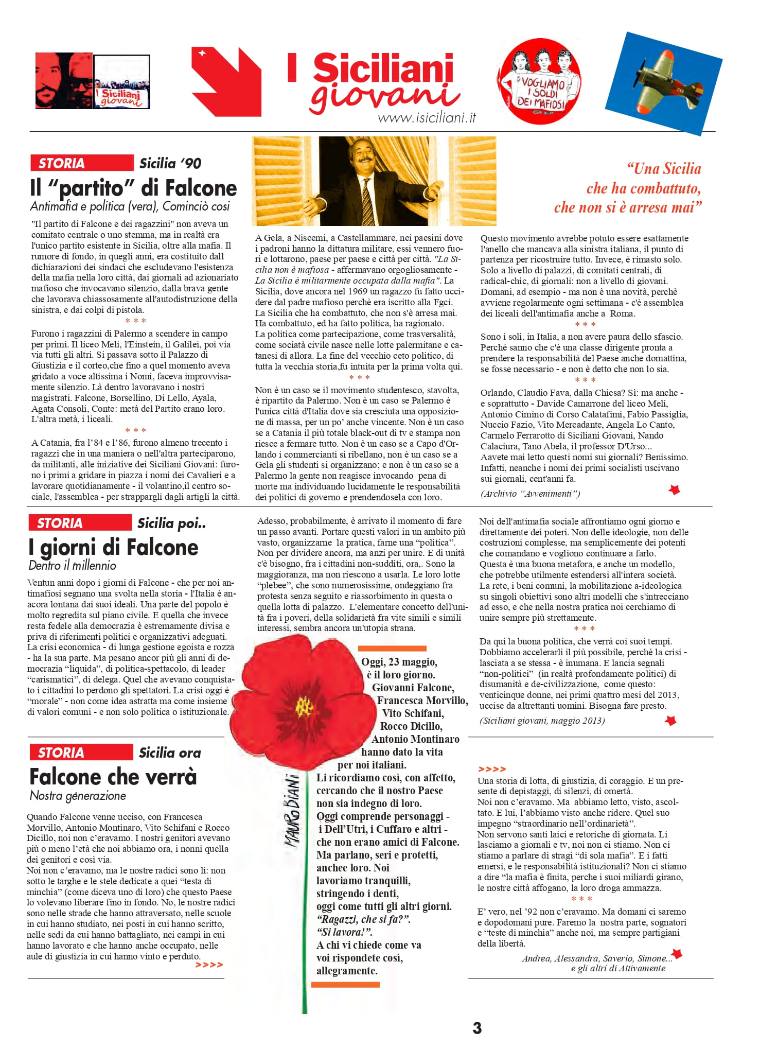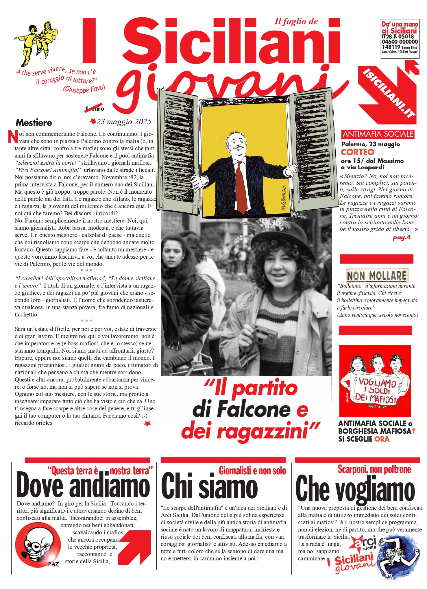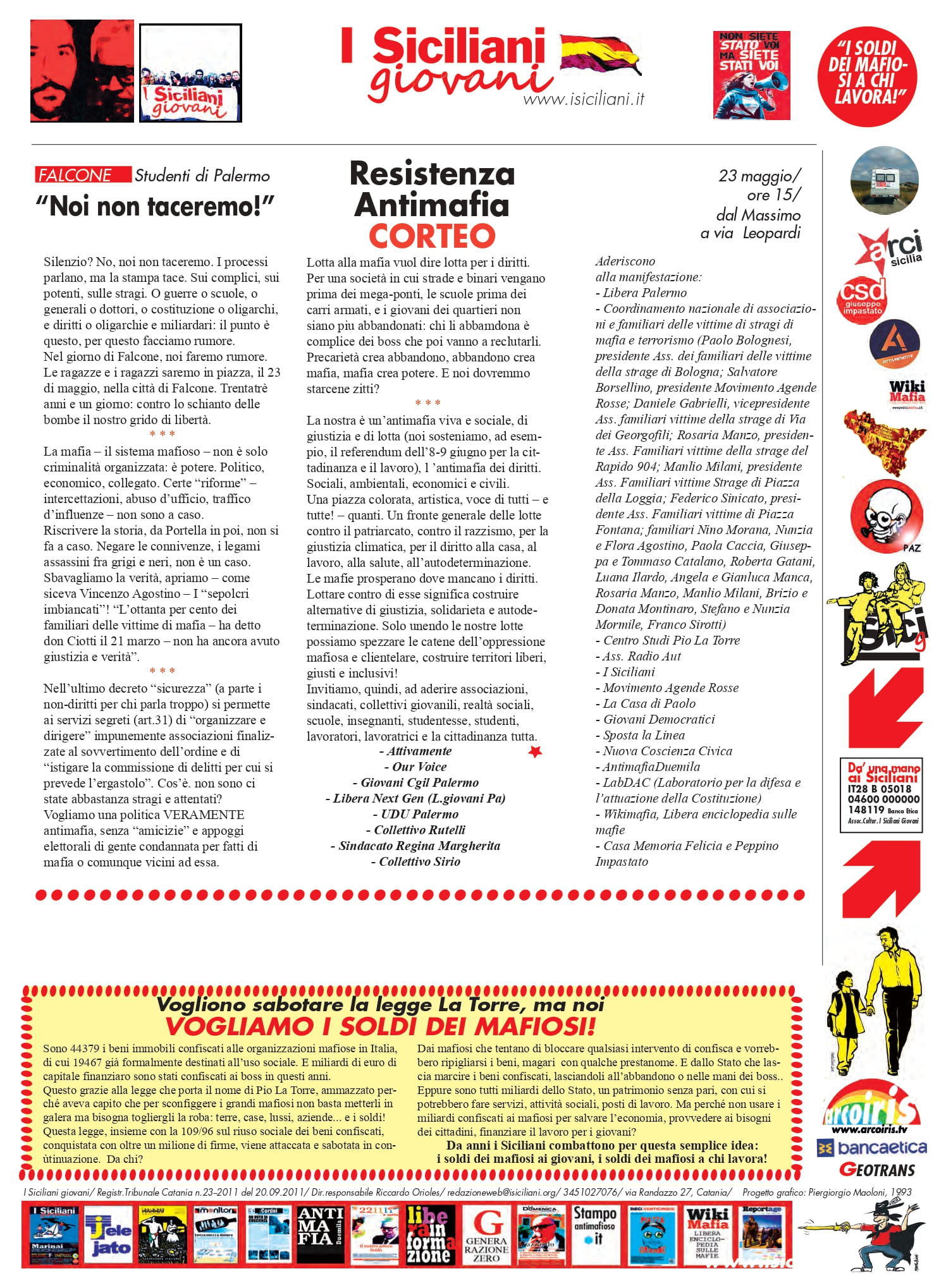 <Silenzio? No, noi non taceremo. Sui complici, sui potenti, sulle stragi. Nel giorno di Falcone, noi faremo rumore. Le ragazze e i ragazzi saremo in piazza nella città di Falcone >