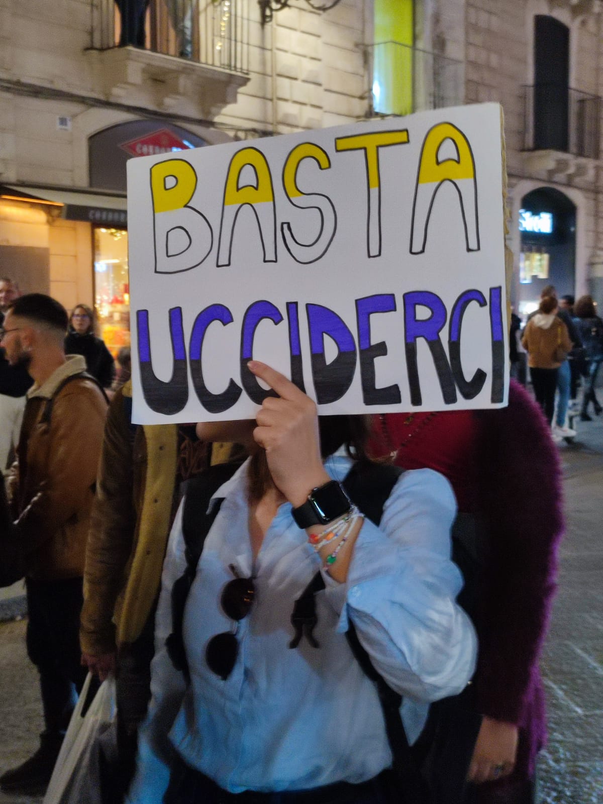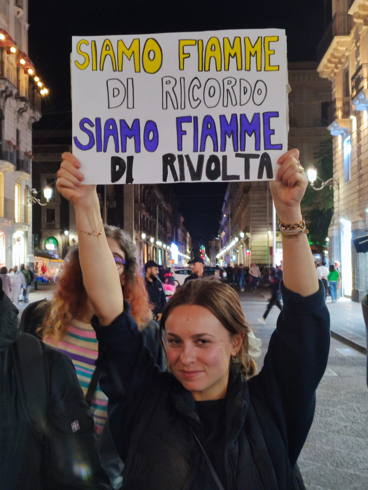 Posso citare Pose? – Certamente – “Gli uomini non ci uccidono perché ci odiano, ci uccidono perché hanno paura di cosa significherebbe amarci”. Lo dice Elektra Aboundance. Dietro i nostri striscioni, le nostre bandiere, i nostri cartelli ci sono le vite e le morti. C’è Sofia che quando aveva solo 15 anni denunciò suo padre ai servizi sociali per le violenze, verbali e fisiche, subite, e non fu accolta, perché secondo loro quella violenza, che era odio transfobico, non era abbastanza grave e la rimandarono a casa con il suo aggressore. C’è Alex, ragazzo Trans, che all’ospedale di Vizzolo a Milano, mentre aspettava sulla barella di ricevere delle cure, fu stuprato da un uomo che lavorava lì, e dopo alcuni giorni di agonia per l’accaduto decise di togliersi la vita. Aveva 22 anni. C’è Nex Benedict, persona non binaria vittima di bullismo, che era costretta ad utilizzare – dopo la legge transfobica sui bagni per transgender dell’Oklahoma – il bagno delle ragazze e che fu ritrovata morta in quello stesso bagno. Uccisa dalle compagne. Aveva 16 anni. C’è Sasha, persona Trans, si è lanciata dal 6° piano terminando il suo dolore. Aveva già provato il dolore della violenza maschile sul suo corpo, la violenza sessuale e quella transfobica. Aveva 14 anni. Ci sono io, sopravvissuta alla transfobia di mio padre, alle violenze sessuali, all’indifferenza delle istituzioni. Io cerco di costruire per me e la mia comunità una vita che valga la pena vivere. Ho 21 anni. Sono viva. Resisto.